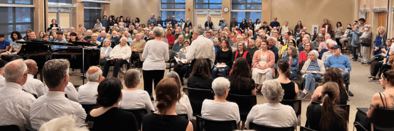 A spectacular concert, the story—almost a year ago, one of our chorus members, Sarah Van Gunten, proposed the idea of the Asheville Senior Chorus (ASC) presenting a concert based on the Term Theme—Women, Gender, and Social Change—offered at OLLI in the spring of 2025. We began planning a month later. After many meetings, revisions, and adjustments, the program evolved into a multi-generational musical performance with multimedia presentation.