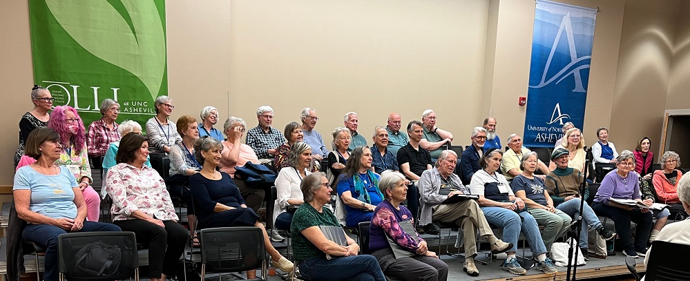 The Osher Lifelong Learning Institute (OLLI) plays a vital role in the success of the Reuter Center Singers, providing essential support in countless ways. From offering rehearsal and performance space to publicizing events and dedicating valuable storage areas, OLLI ensures the Singers have what they need to thrive. Unlike the early days of the UNCA Community Chorus—when members had to transport heavy risers themselves—OLLI now provides a dedicated crew to set up and take down risers and chairs for every performance. Executive Director Catherine Frank also demonstrates her personal commitment by attending concerts, generously giving her time to support the group.
